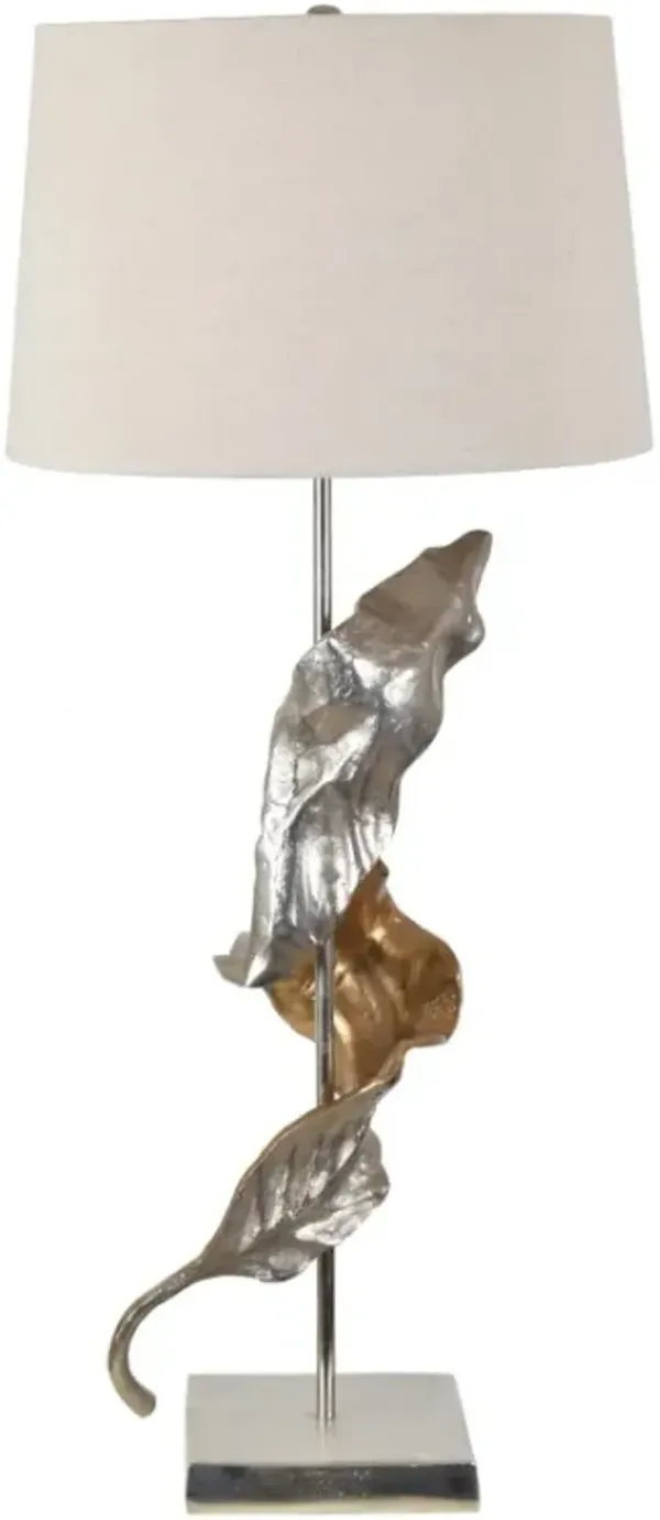 Crestview Collection Willow Aluminum/White Two-Toned Sculptural Leaf Table Lamp