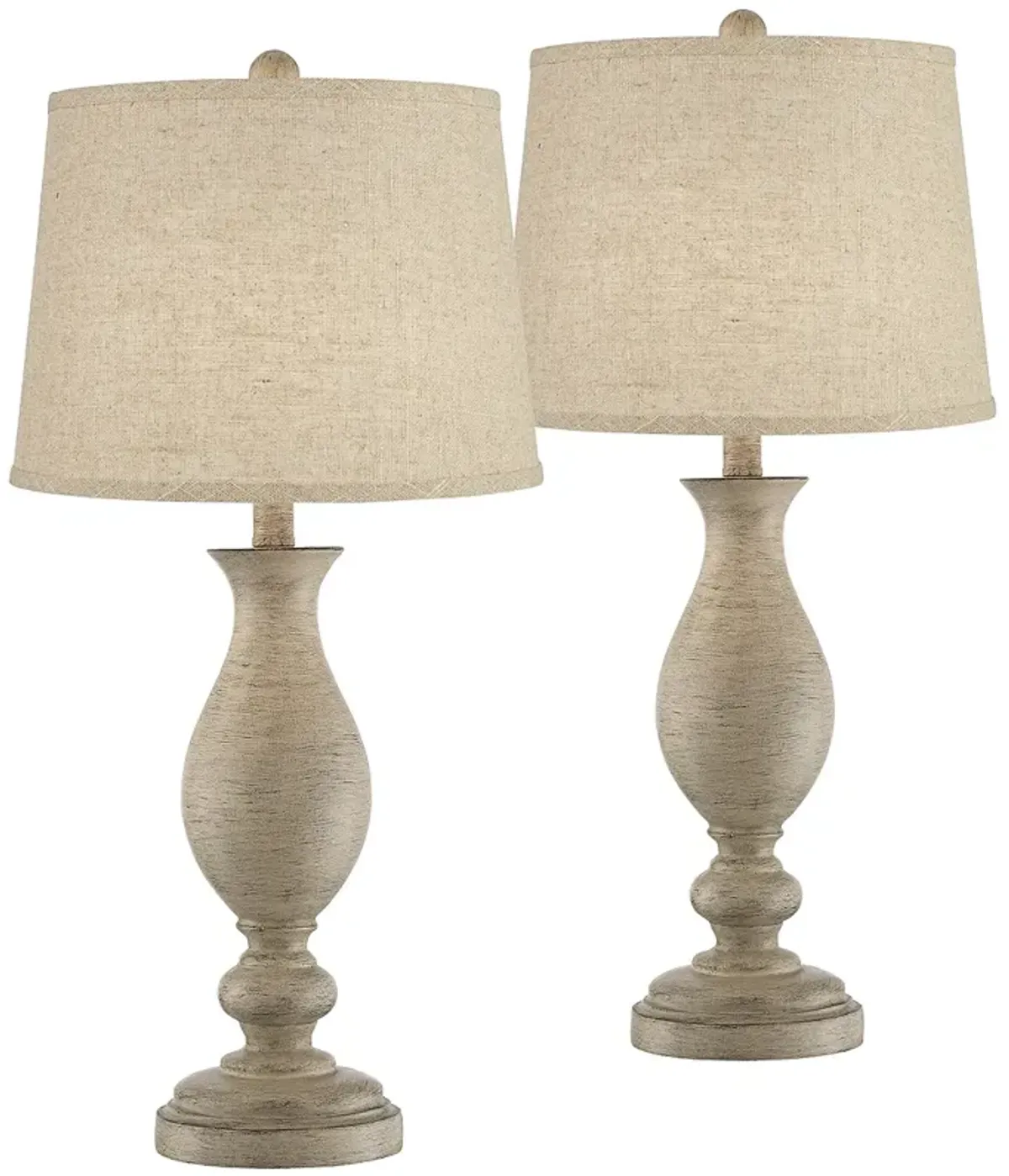 Farmhouse Table Lamp Set of 2 – 22" Antique Grey Base, Linen Shade