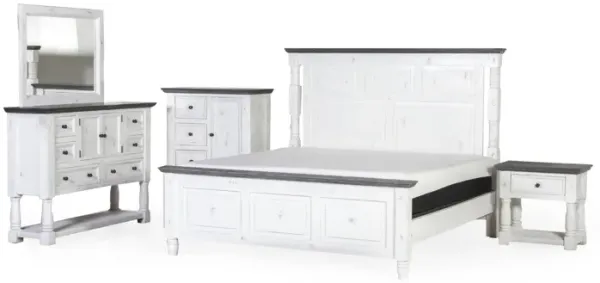 Selena 6-Piece King Bedroom Set with Dresser, Mirror, and Nightstand - White