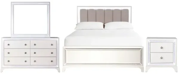 Grace Panel Bed, Dresser & Mirror in Snowfall, CA King