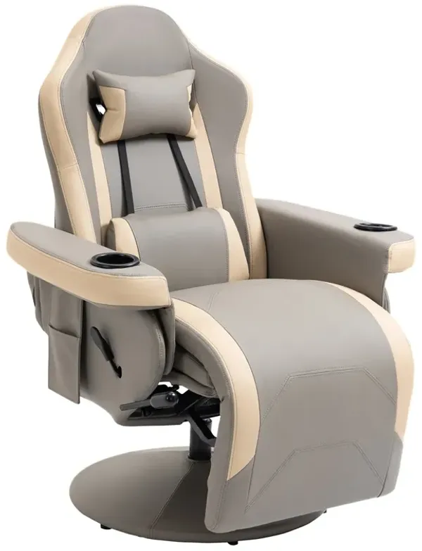 Beige Swivel Recliner: 135° Adjustable, Padded Seat