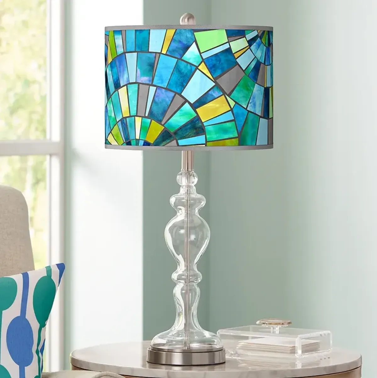Giclee Glow Apothecary 28" Aqua Mosaic Shade Clear Glass Table Lamp