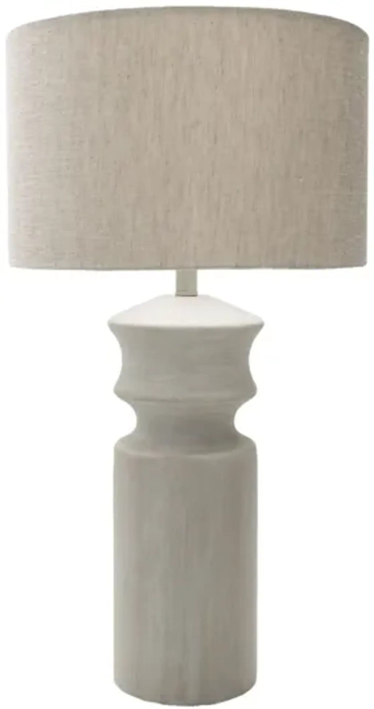 The Pelham Island lamp is a great neutral lighting piece to complete your living space with its light gray hand finished composition body and taupe linen shade. Partial assembly may be required.