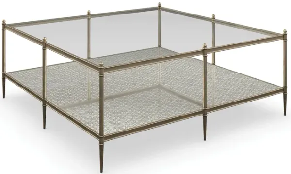 Adri Square Glass Top Coffee Table with Casters Matte Brass