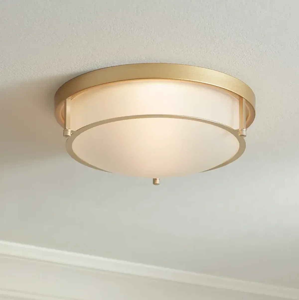 Regecy Hill Soft Gold 12" White Glass Schoolhouse Ceiling Light