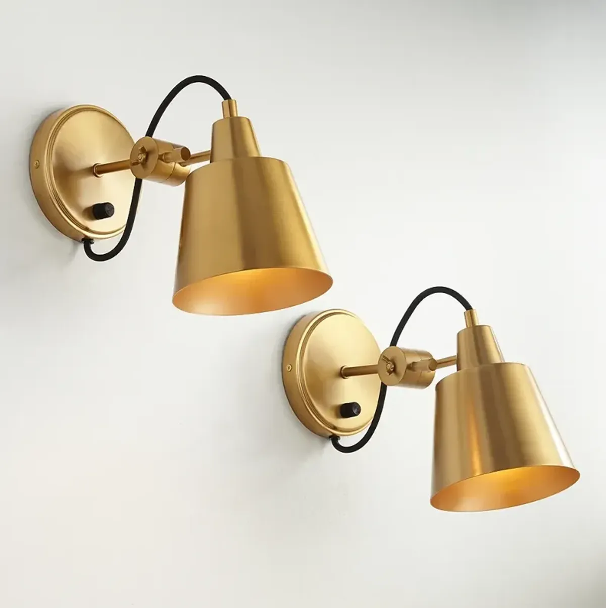 Possini Euro Capetown 8" High Warm Brass Swivel Wall Sconce Set of 2