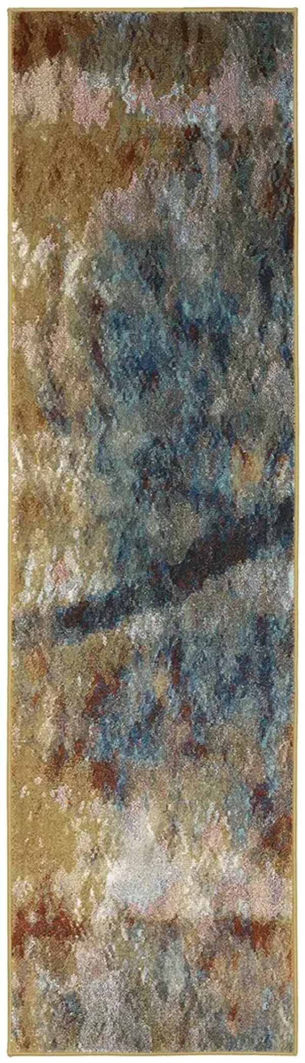 2' x 8' Abstract Power Loom Stain Resistant Runner Rug - Blue Gold Teal Rust Gray And Beige