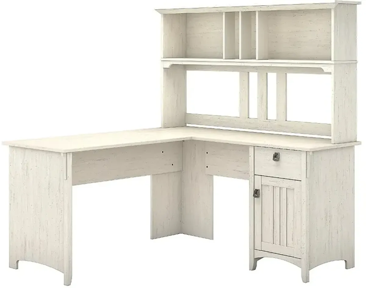 Salinas Antique White L Shaped Pedestal Desk with Hutch