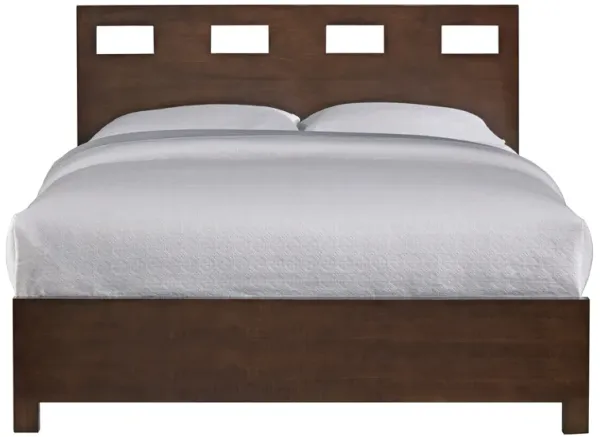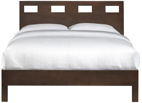 Yee Mahogany Wood Platform Queen Bed, Panel Cut Out Design, Dark Brown - Benzara