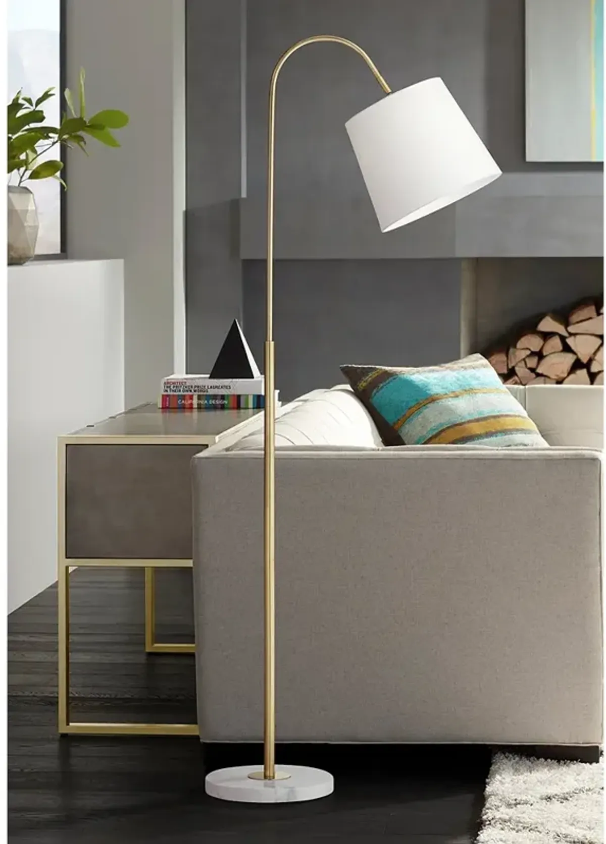 Noble Park Seminole Gold and White Marble Arc Floor Lamp