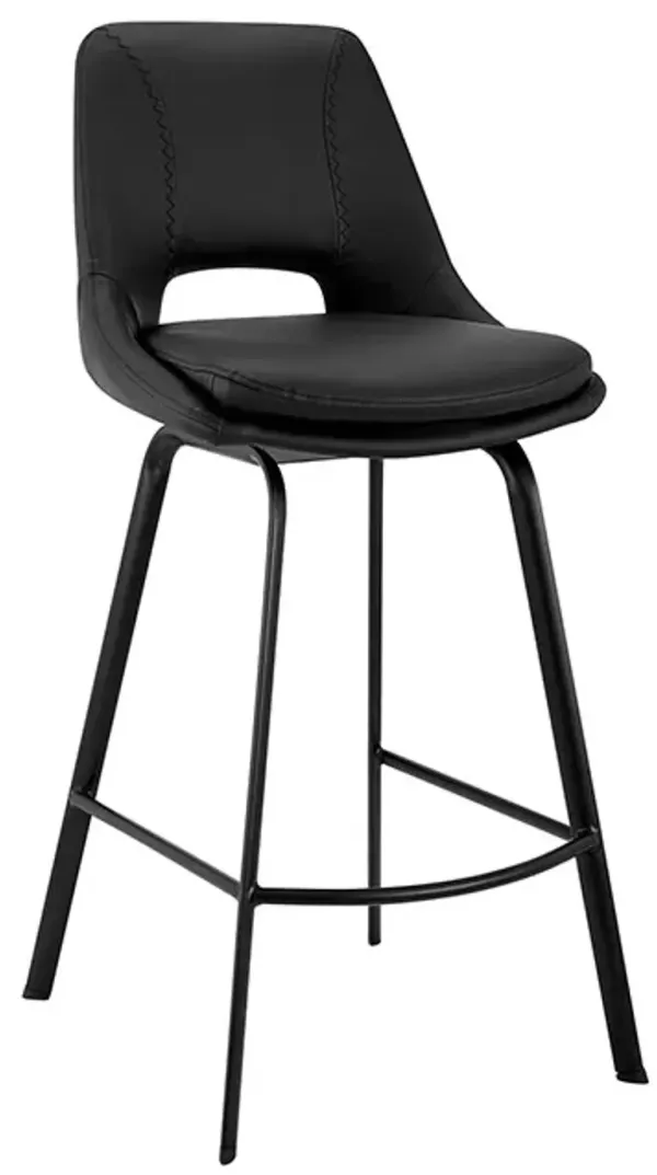 Faux Leather And Iron Swivel Counter Height Bar Chair - Black