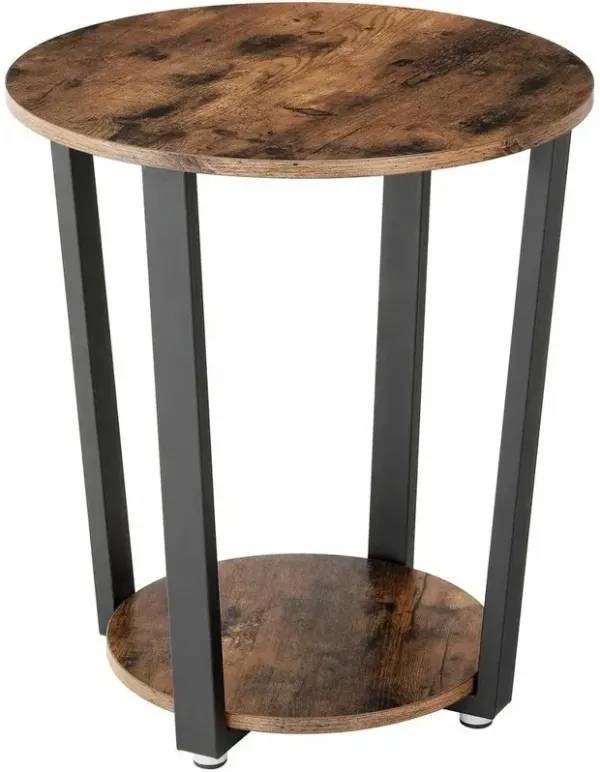 2-tier Round End Table with Storage Shelf & Metal Frame
