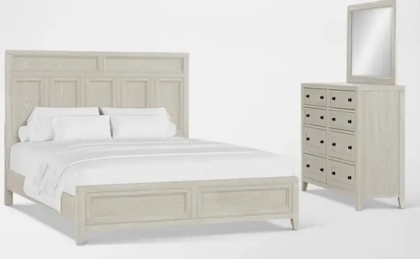 Rowan 5-Piece King Panel Bedroom Set with Dresser and Mirror - White