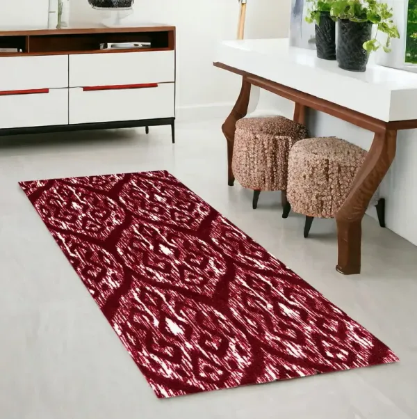 2' x 6' Ikat Tufted Washable Non Skid Area Rug - Red And White