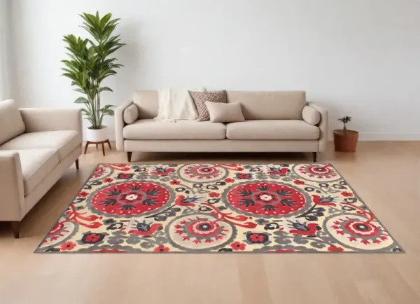 5' x 8' Oriental Area Rug - Red And Gray