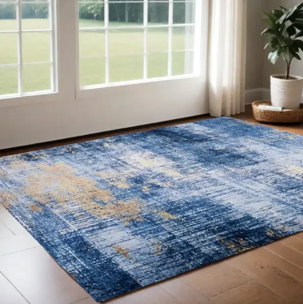 3' x 5' Abstract Washable Non Skid Area Rug - Blue And Gold