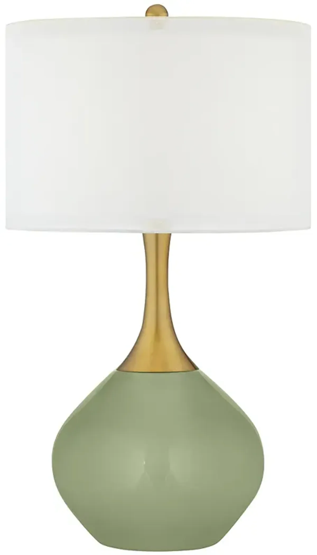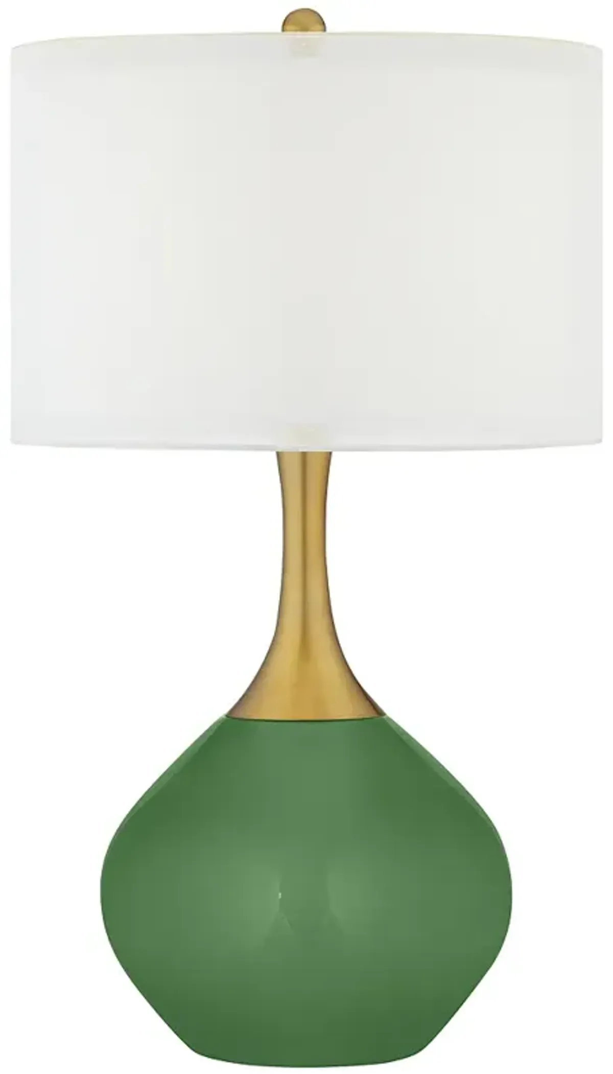 Color Plus Nickki Brass 30 1/2" Modern Deep Lichen Green Table Lamp