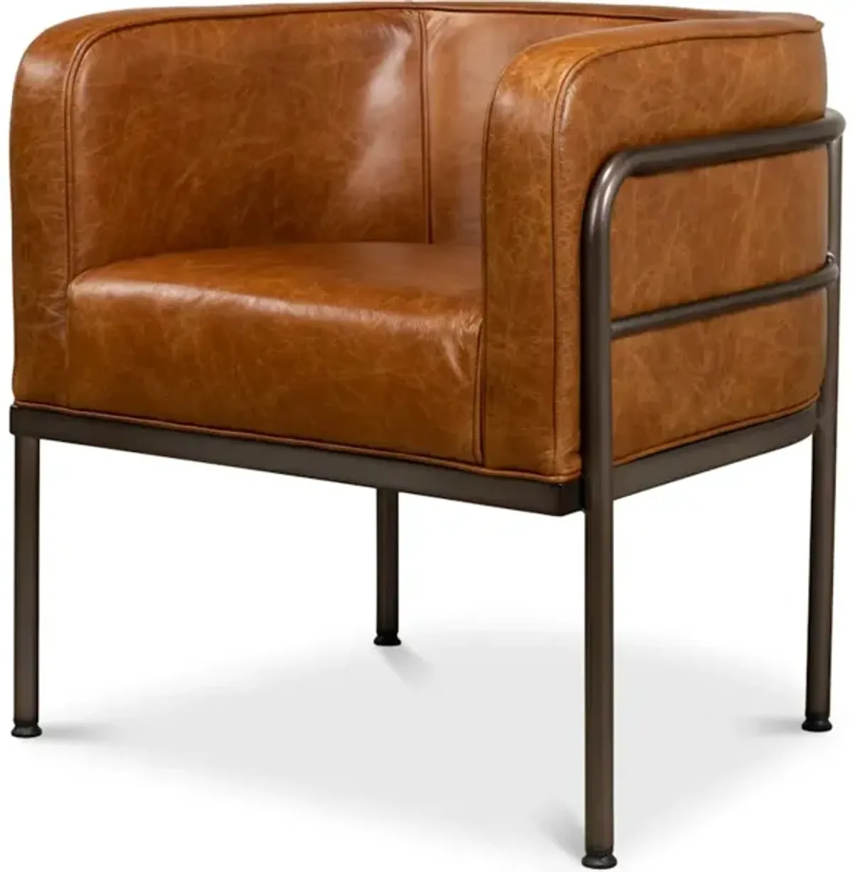 Vintage Top Grain Leather And Steel Solid Color Lounge Chair - Blue