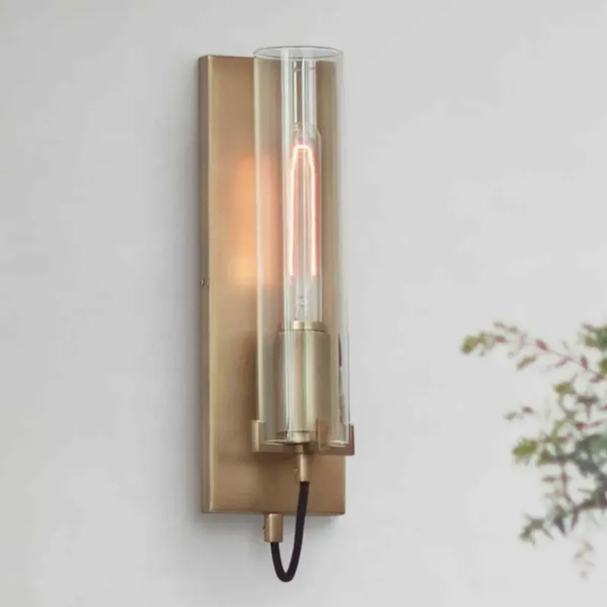 Bellini Mid Century Modern Clear Glass Polished Brass Bath Wall Sconce