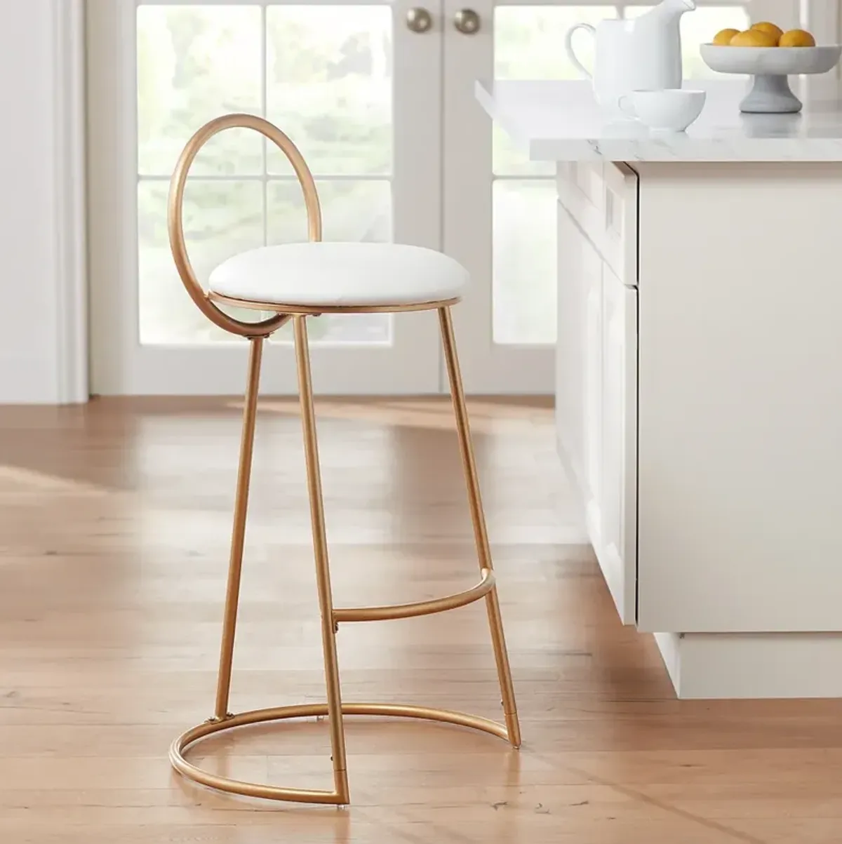 Palmer Luxe Gold Metal and White Fabric Counterstool