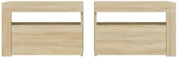 vidaXL Bedside Cabinet & LED Lights 2 pcs Sonoma Oak 24"x14"x16"