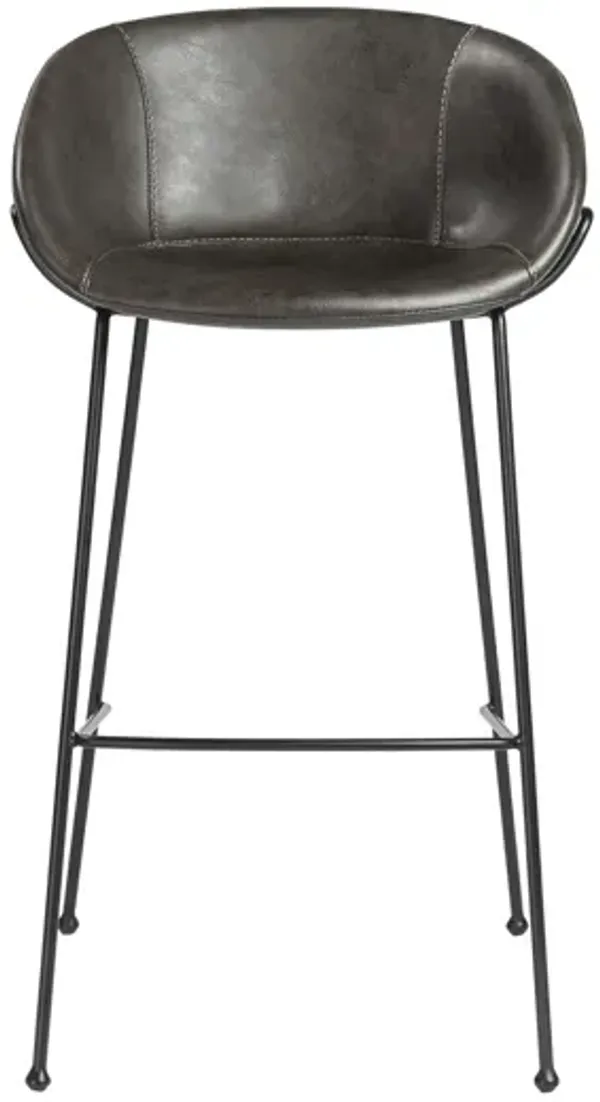 Glamour Home Set of 2 Avalyn Gray Faux Leather Bar Stool with Black Metal Legs