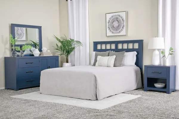 St Regis Panel Headboard, Dresser, Mirror & Nightstand in Blue, Queen