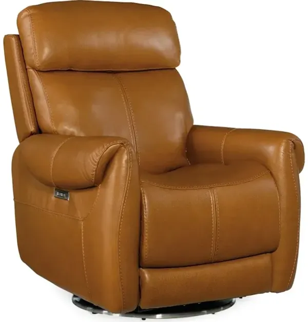London Leather Large Fully Loaded Swivel Glider Recliner in Whiskey