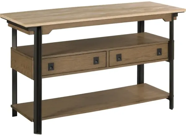 Sauder® North Avenue® Charter Oak Console with Black Metal Frame