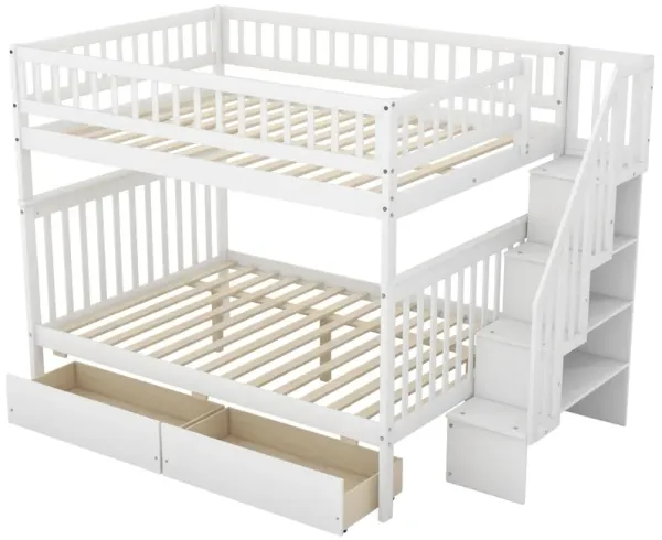 Twin-Over-Full Bunk Bed With Drawers, Ladder And Storage Staircase