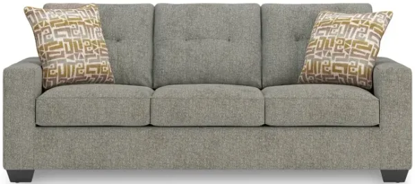 Blaire Sofa, Gray Polyester, 2 Accent Pillows, Black Wood, 80 Inch - Benzara