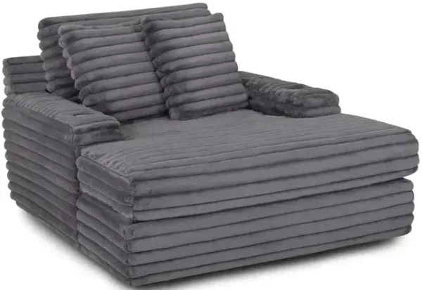 Customers generally find the chaise very comfortable, soft, and roomy, making it ideal for relaxation, napping, and snuggling. Many appreciate its size, noting that it can easily accommodate multiple people or pets. However, some customers have noted that the cushion can sink in certain spots and the fabric may shed.