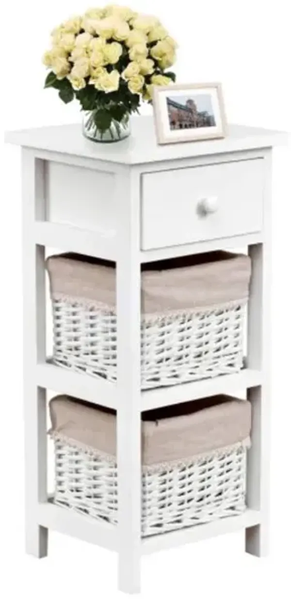 White Wooden 1-Drawer End Table Nightstand with 2 Baskets