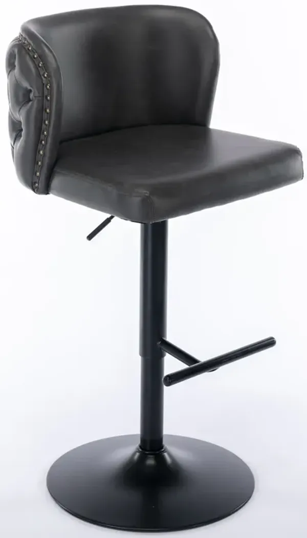 Elama Faux Leather Tufted Bar Stool in Black with Chrome Base and Adjustable Height