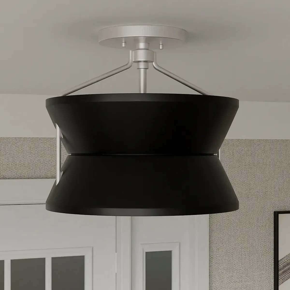 Minka Cascade 15" Modern Black and White Double Drum Ceiling Light