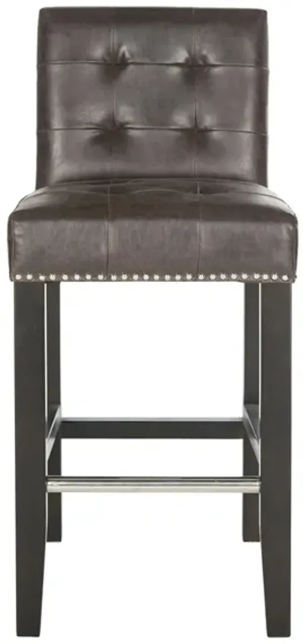 Steve Silver Aspen 24-Inch Faux-Leather Grey Nickel Nailhead Trim Counter-Height Stool In Ebony Black