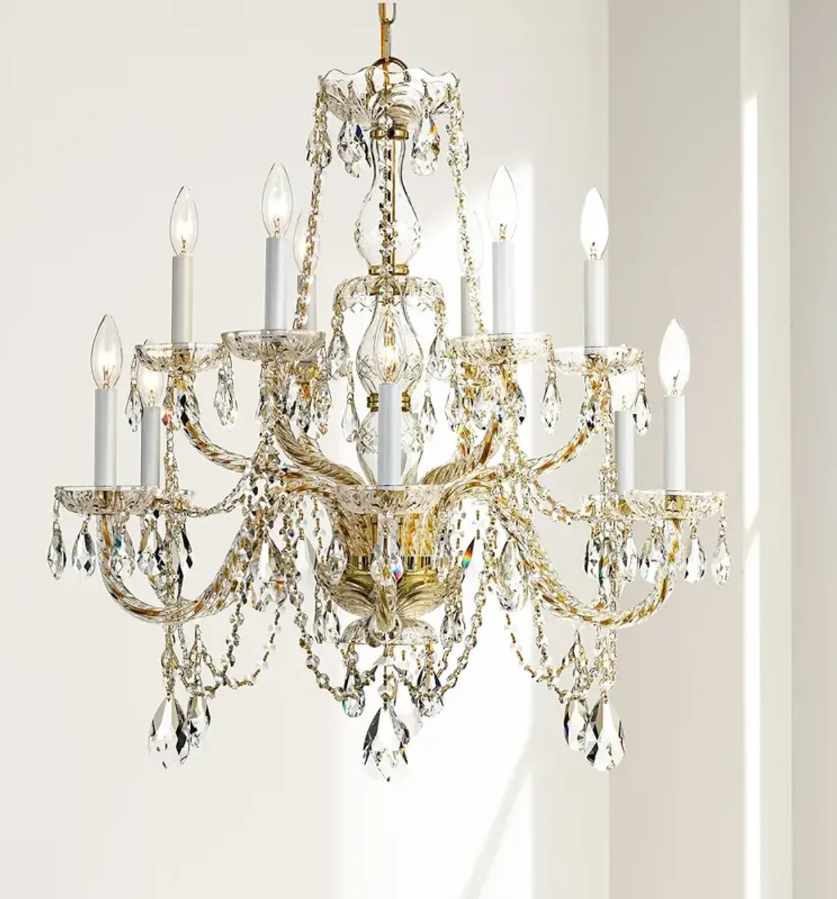 Traditional Crystal 31"W 12-Light Polished Brass Chandelier