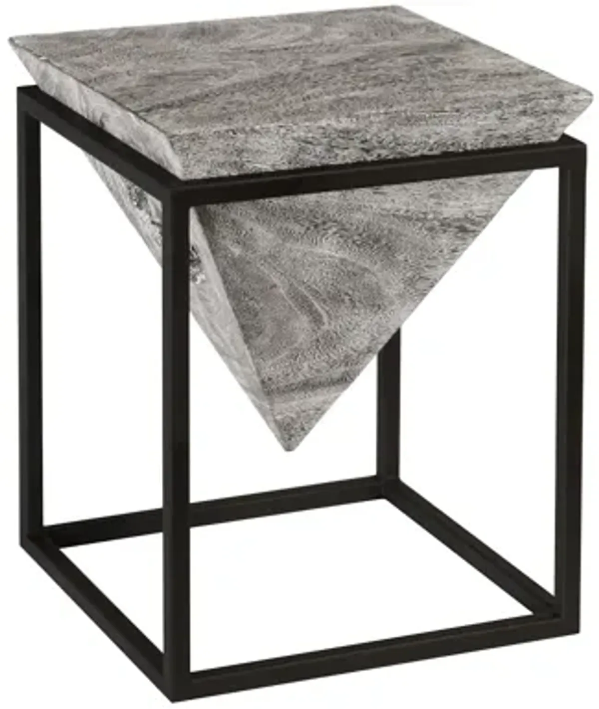 Inverted Pyramid Side Table, Gray Stone, Wood/Metal, Black, SM