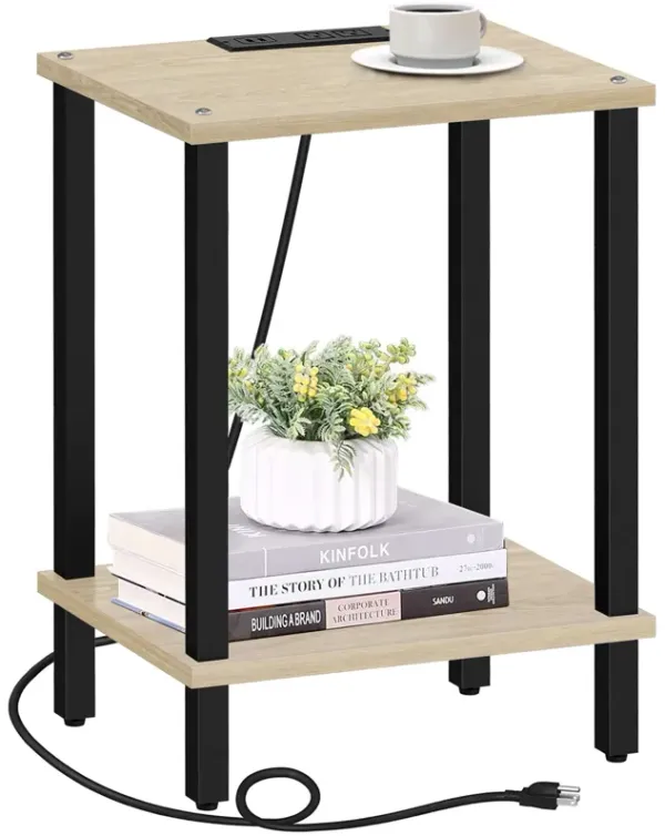 Just 3-Tier Turn-N-Tube USB and Type-C Charging Port End Table, Oak/Black