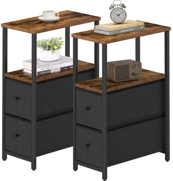 TUTOTAK Small Narrow End Table with Charging Station, Set of 2, Side Table with Outlets, Nightstand with 2 Cloth Drawers, Couch