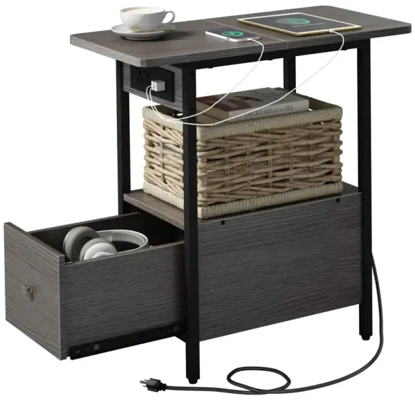 TUTOTAK Small Narrow Side Table with Charging Station, Set of 2, Skinny End Table for Small Spaces, Slim Nightstand with USB Por