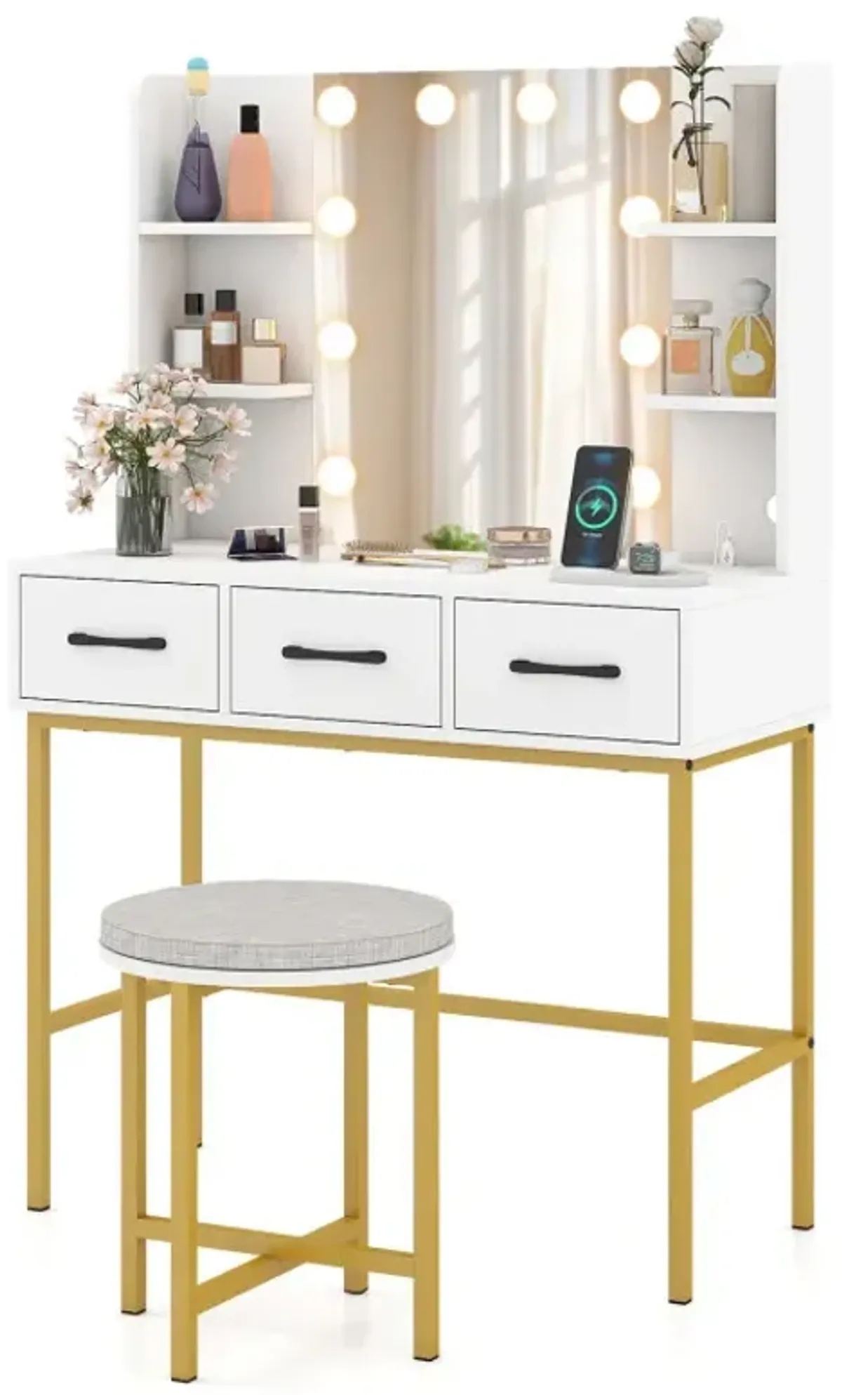 Vanity Table Set with RGB LED Lights and Wireless Charging Station