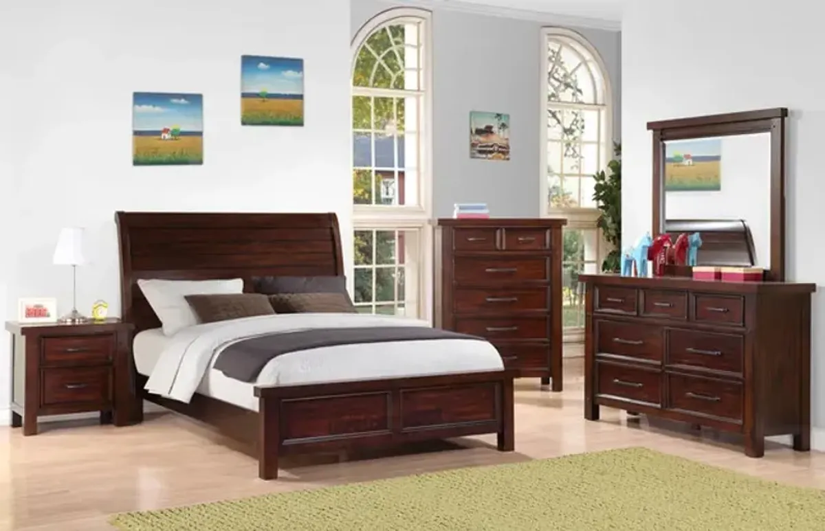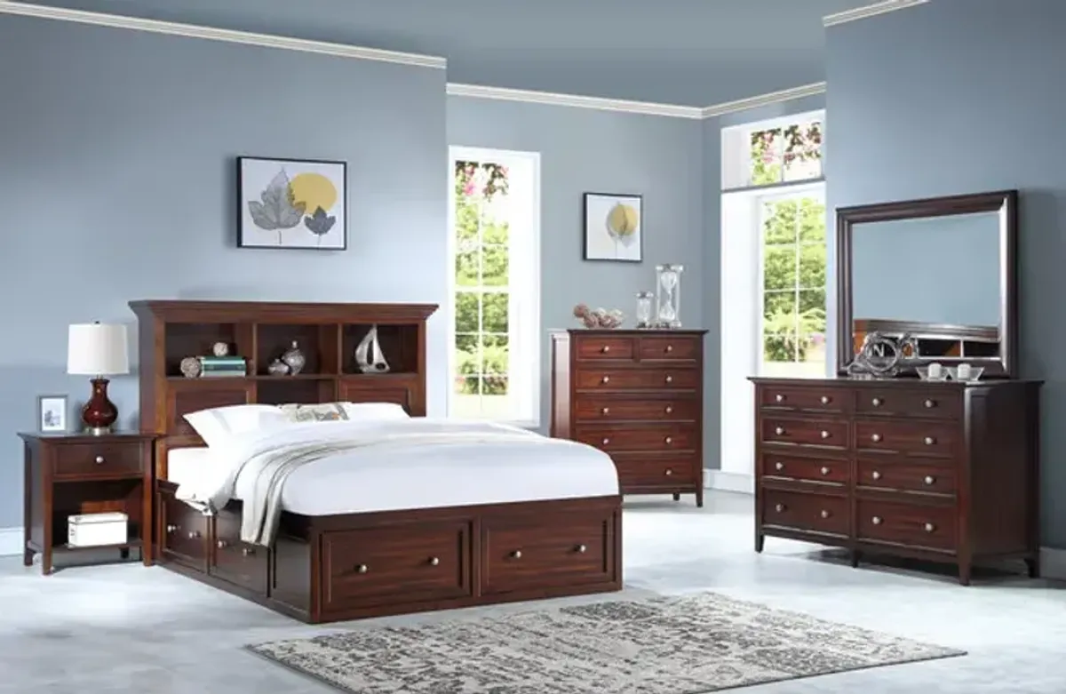 Sullivan Panel Bed w/ Storage, Dresser & Mirror in Rich Cherry, Queen