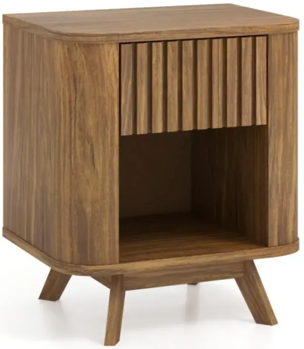 Modern Fluted Drawer Nightstand With Open Cubby Coastal