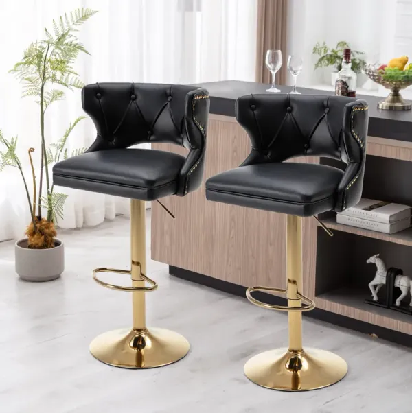 Astro Black Performance Vegan Leather and Gold Adjustable Stool