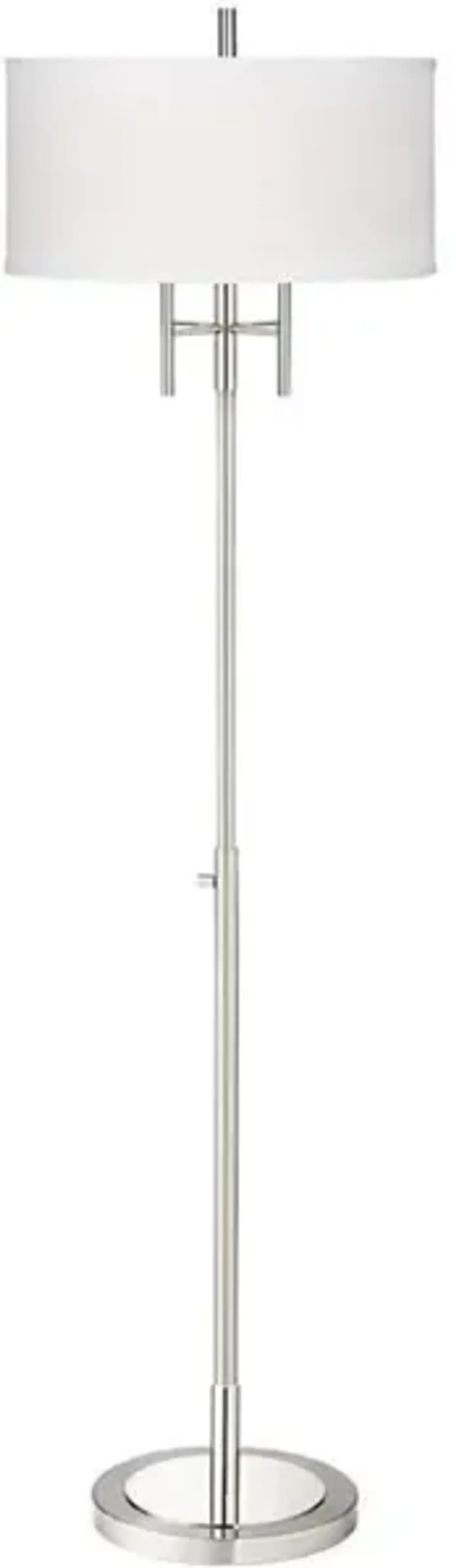 Two Light Floor Lamp With White Drum Shade - Black And Brass