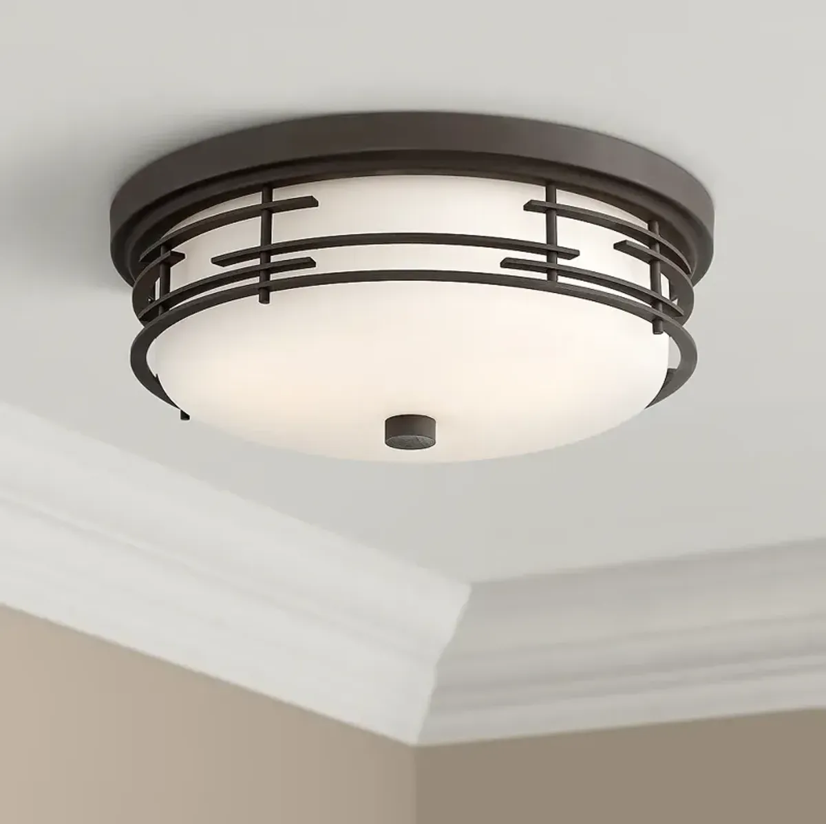 Franklin Iron Works Arden 14" Bronze and White Glass Ceiling Light