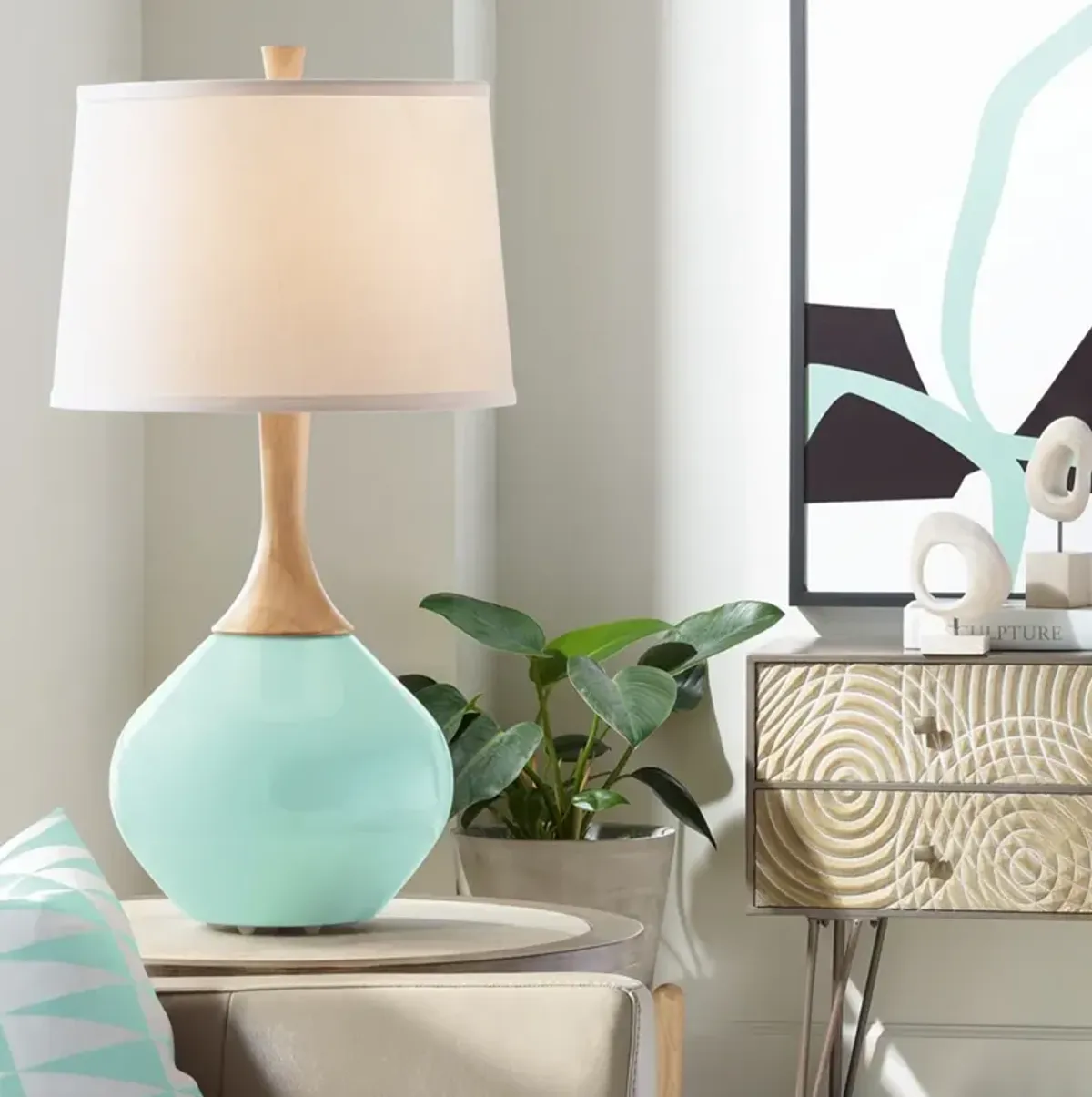Color Plus Wexler 31" White Shade with Envy Green Table Lamp