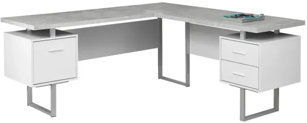 Computer Desk - 70"L White / Cement-Look Left/Right Face