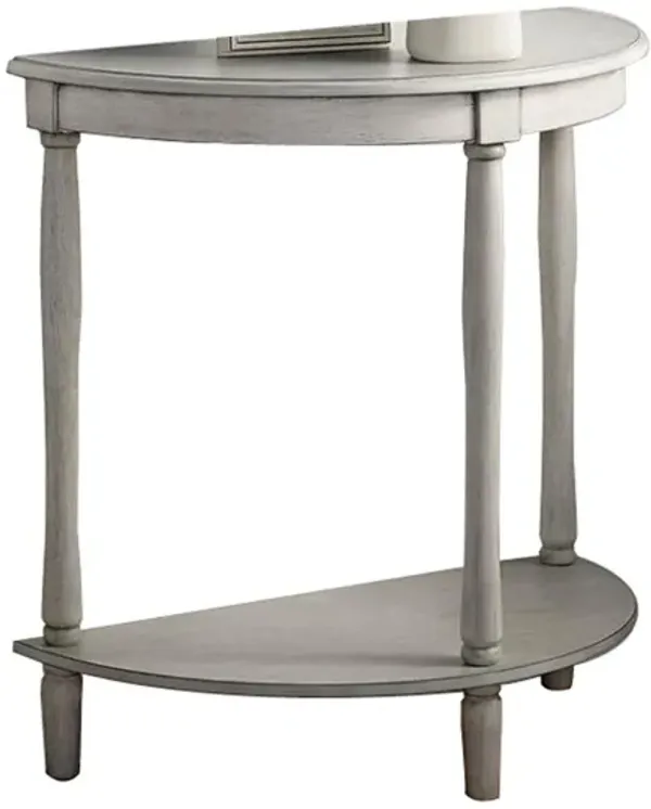 Wooden Half Moon Shaped Console Table with One Open Bottom Shelf, Gray-Benzara